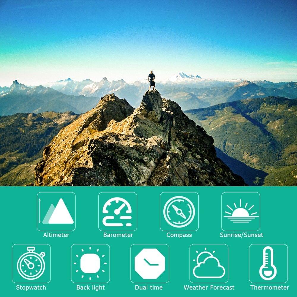 description":"Clip Pocket Watch, easy to take along , clip on bag/clothes, take in hand, suitable for outdoor hiking very well, large face design, easy to read, a good sports partner for you. Features: Clip Pocket Watch , easy to take along, clip on bag/clothes, take in hand, suitable for outdoor hiking very well, large face design , easy to read , a good sports partner for you. Compass accurately provide directional assistance, you do not lose your way, great for outdoor adventure enthusiasts. Multi-function: Altimeter , Barometer , Compass , Thermometer , Weather forecast , Stopwatch , Countdown , EL Back light , Alarm , Dual time display , Calendar , Sunrise and sunset times , Waterproof , Shockproof , waiting for you to experience. This watch's back light is a little dim , safe button Cell , professional movement with digital display for accurate time keeping, protective hardened glass, better than normal glass , protects watch from scratches. With high waterproof level suitable for swimming and snorkeling in about 164ft deep water, not for diving and press any buttons in water. Compass: A good tool help adventure locate the right direction anywhere. Note: Keep away from large metal products like home electrical appliances, metal bridge or anything with strong magnet. Function: Time function: hour, minute, second, year, month, date, day. Alarm clock reminding and countdown function. With function of altimeter, compass, barometer, thermometer, pedometer and world time. Sunrise and sunset times (43 cities). Record sport time and relative altitude data. Check 48 hours of historical air pressure record and 24 hours of historical altitude record. Check total rising/descending altitude and highest/lowest record in 24 hours. Autolocates and records climbing data. Autocorrects altitude. Supports remote selfie. Fishing rate index, great for people who love fishing. Baring Tracking. Battery capacity reminder. EL backlight function. Water resistant up to 50m/164ft. Specifications: Color: Red+White, Yellow+Black, Red+Black, Yellow+White (Optional) Main material: Aluminium Watch surface material: Hardened glass Dial size: 55 * 17mm / 2.2 * 0.7in(diameter * thickness) Net weight: 58g / 2.0oz Package size: 195 * 100 * 28mm / 7.7 * 3.9 * 1.1in Package weight: 129g / 4.5oz Package List: 1 * Sports Watch 1 * User Manual(English) 1 * CR2032