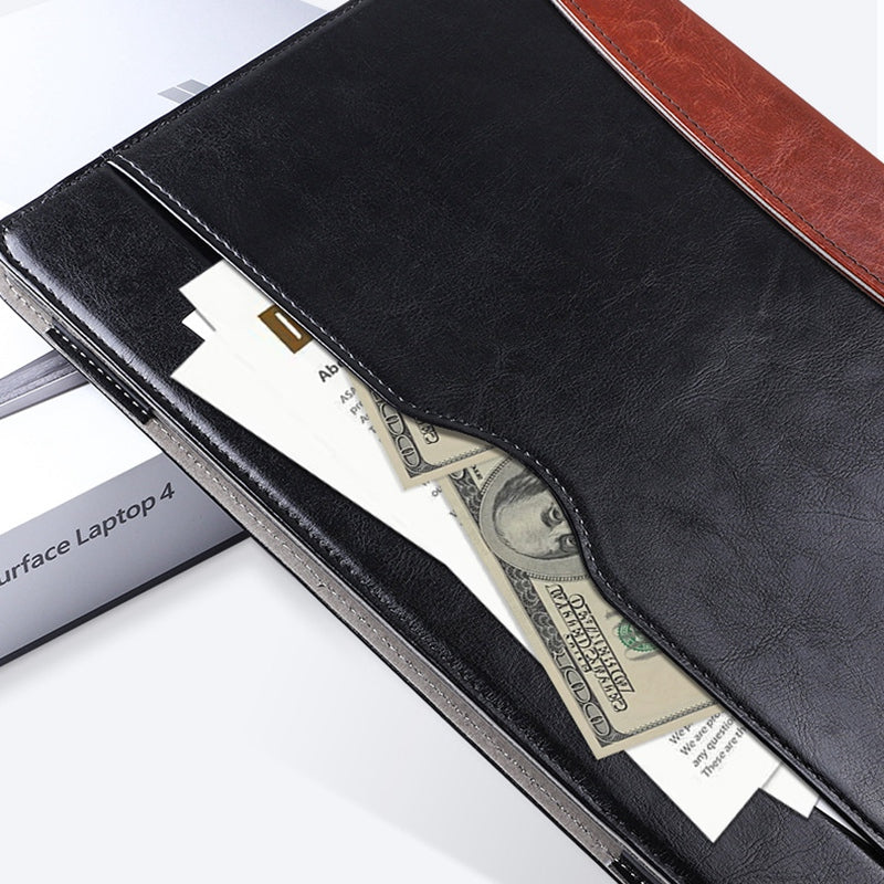 SS-26 Laptop Case Cover for Microsoft Surface Laptop 1 / 2 / 3 / 4 13.5 inch, PU Leather Stand Notebook Sleeve Skin Pouch - Leather Splicing / Black+Brown