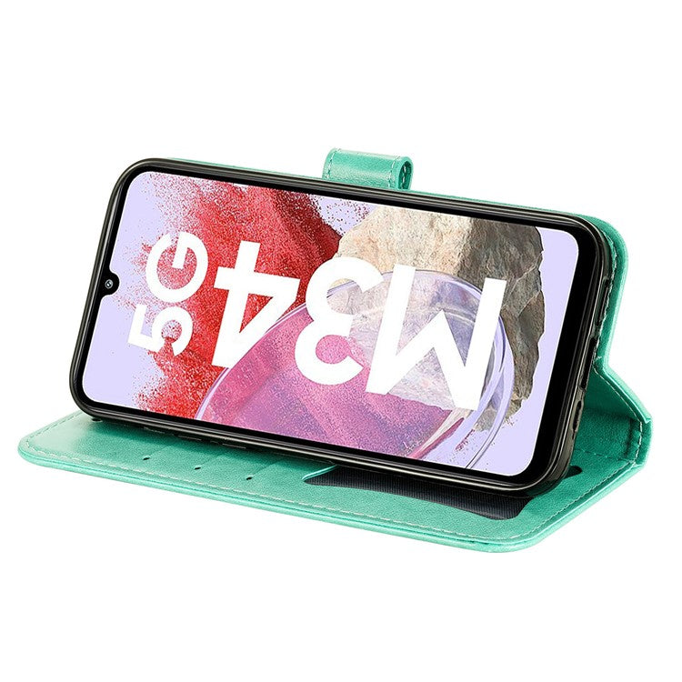 Stand Cover for Samsung Galaxy F34 5G / M34 5G Flower Imprint PU Leather Wallet Phone Case - Green