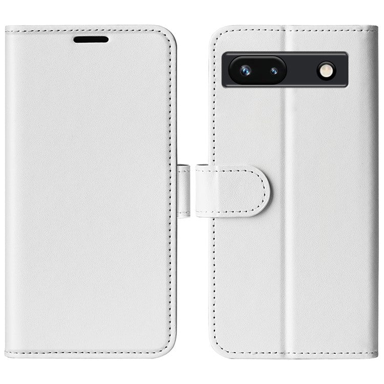 Stand Phone Case for Google Pixel 7a PU Leather Wallet Crazy Horse Texture Flip Cover - White