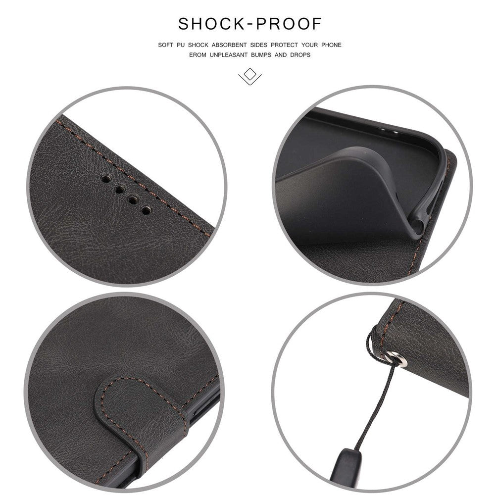 Stand Wallet Case for Samsung Galaxy M13 5G Drop Resistant PU Leather Phone Cover with Strap - Black