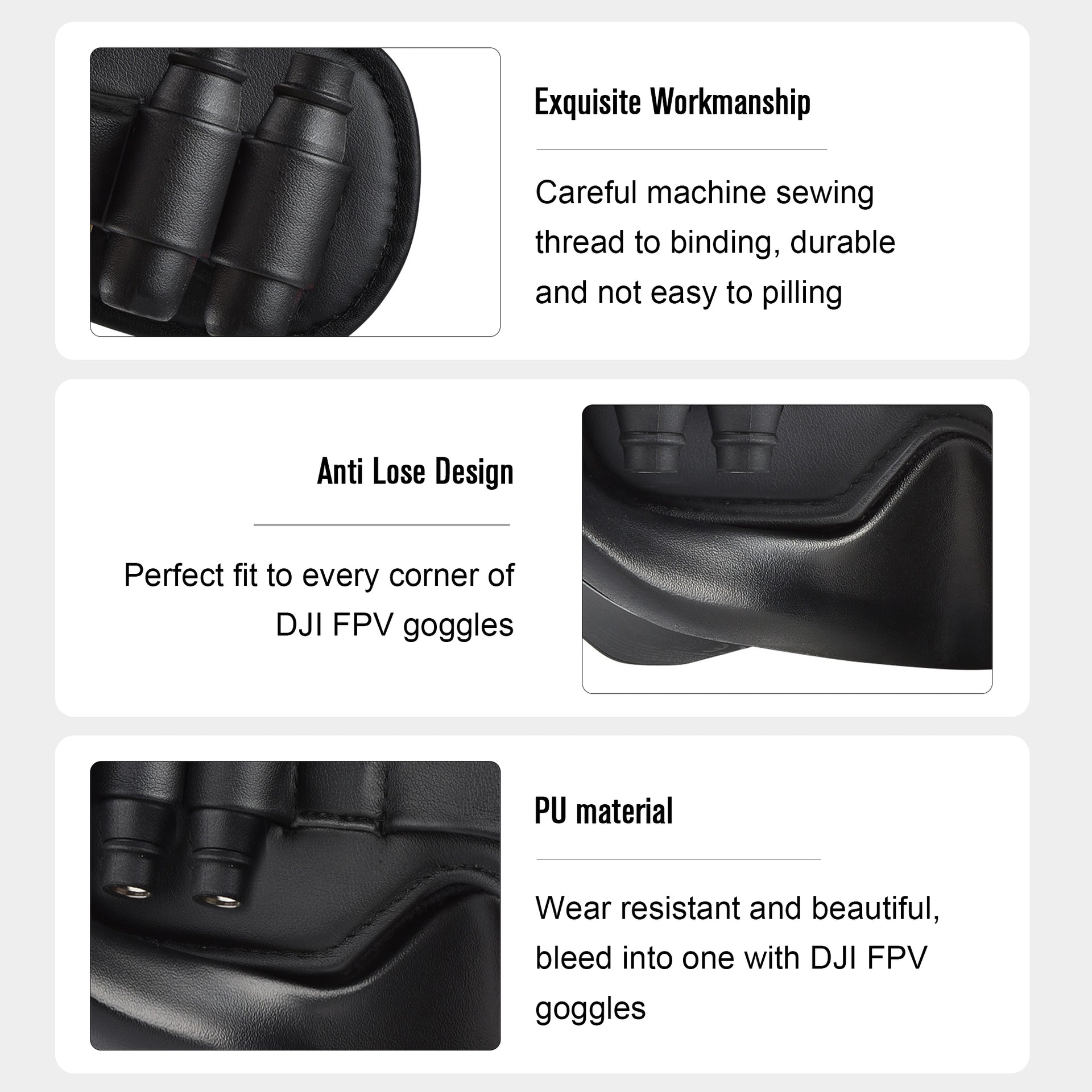 The front is made of leather, and the back is made of soft flannel to protect the FPV goggle lens