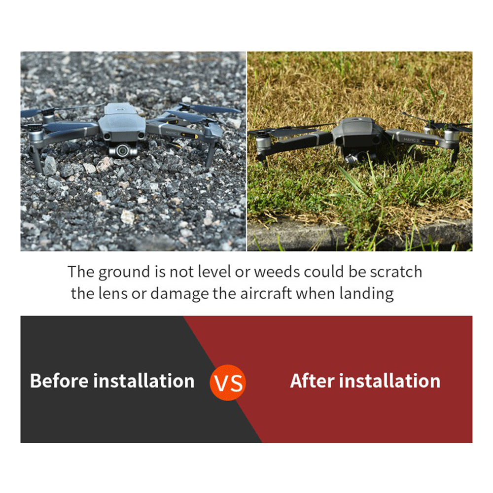 Effectively heighten the fuselage by 35mm, which can prevent ground debris from contaminating the fuselage or damaging the gimbal when taking off and landing the drone, and it can still take off and land on uneven ground