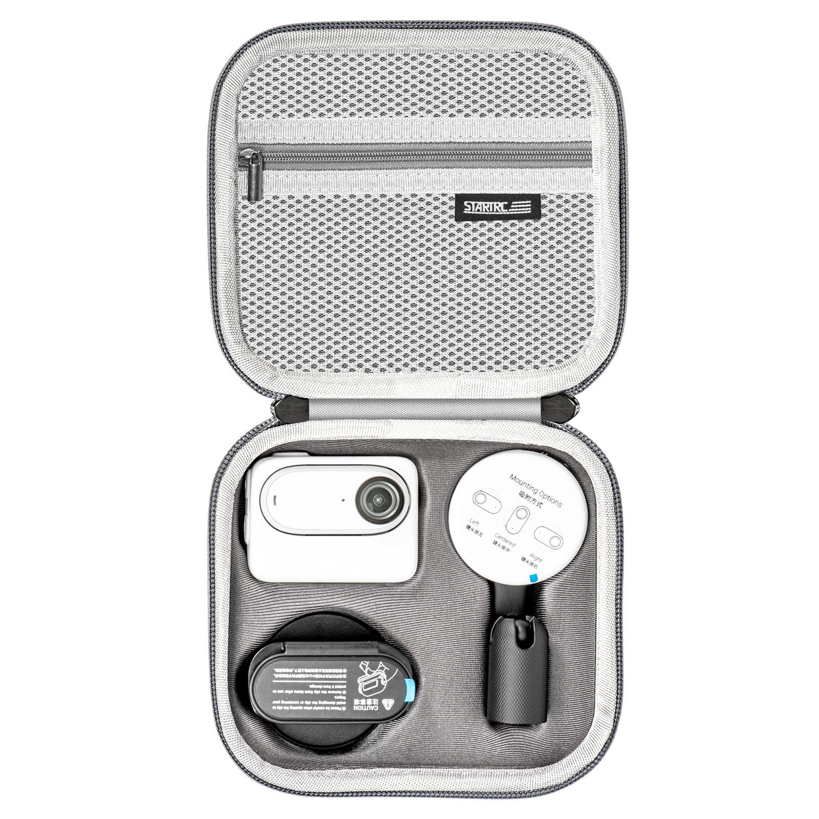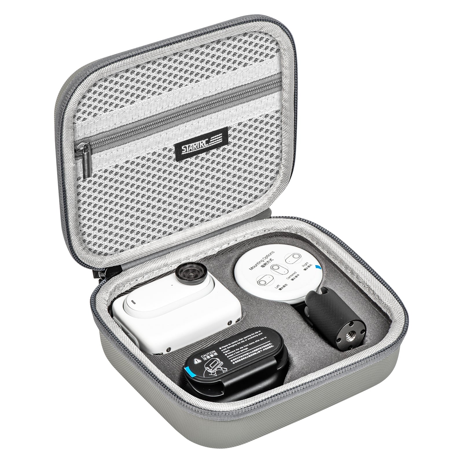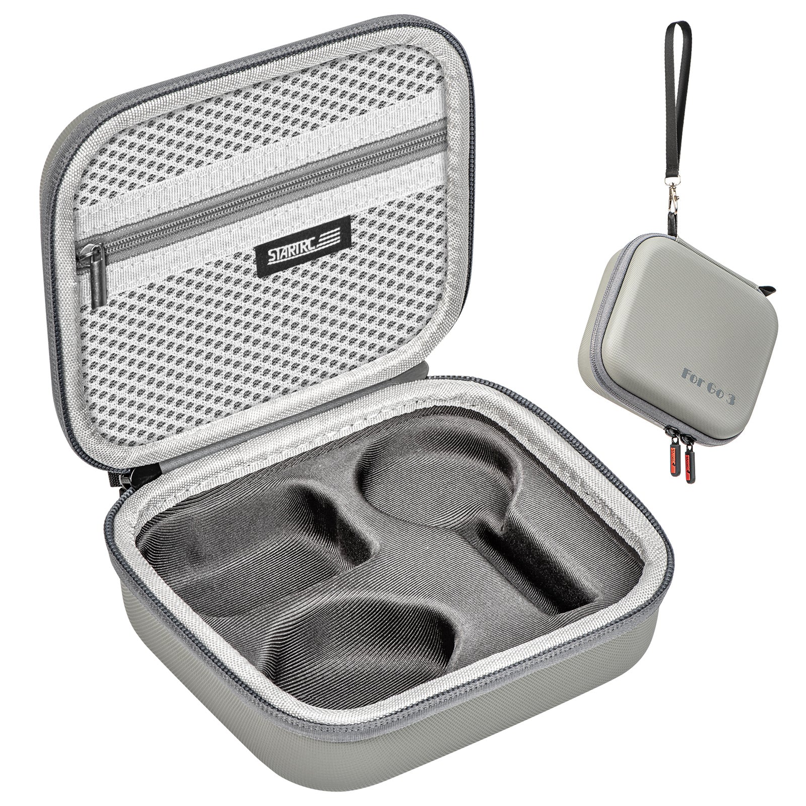 Uniqkart 1123807 PU Leather Storage Bag for Insta360 GO 3 Camera Carrying Case Shockproof Box Travel Handbag - Grey