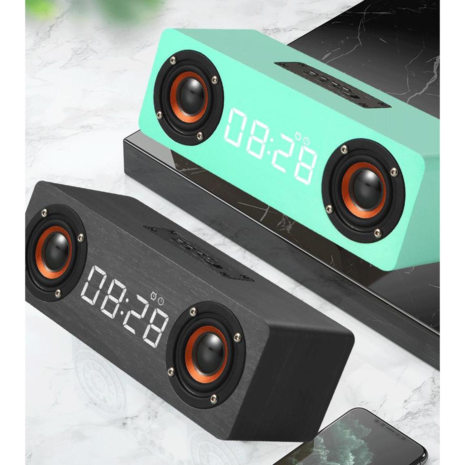 Stereo Sound Clock Soundbar Speaker for Home Office Computer Smartphone Work gray wood grain
