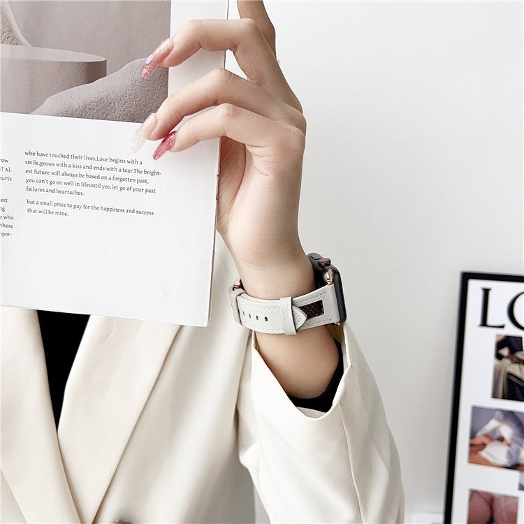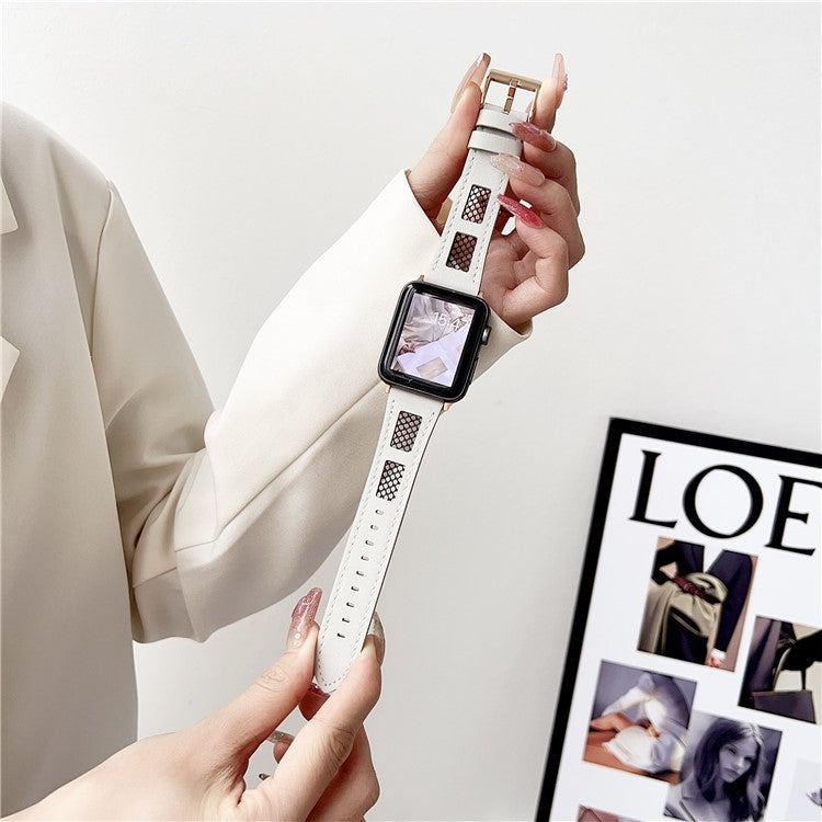 Strap For Apple Watch Series 10 42mm / 9 8 7 41mm / SE (2023) SE (2022) SE 40mm 6 5 4 / 3 2 1 38mm PU Leather Watch Band with Mesh - White