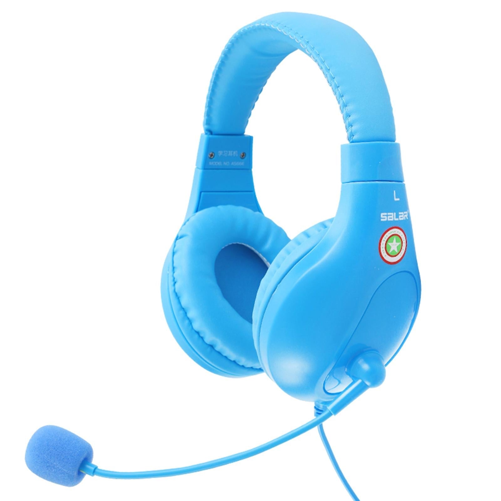 Student Headphones with Micophone Adjustable Comfortable Headset for School A566E Blue