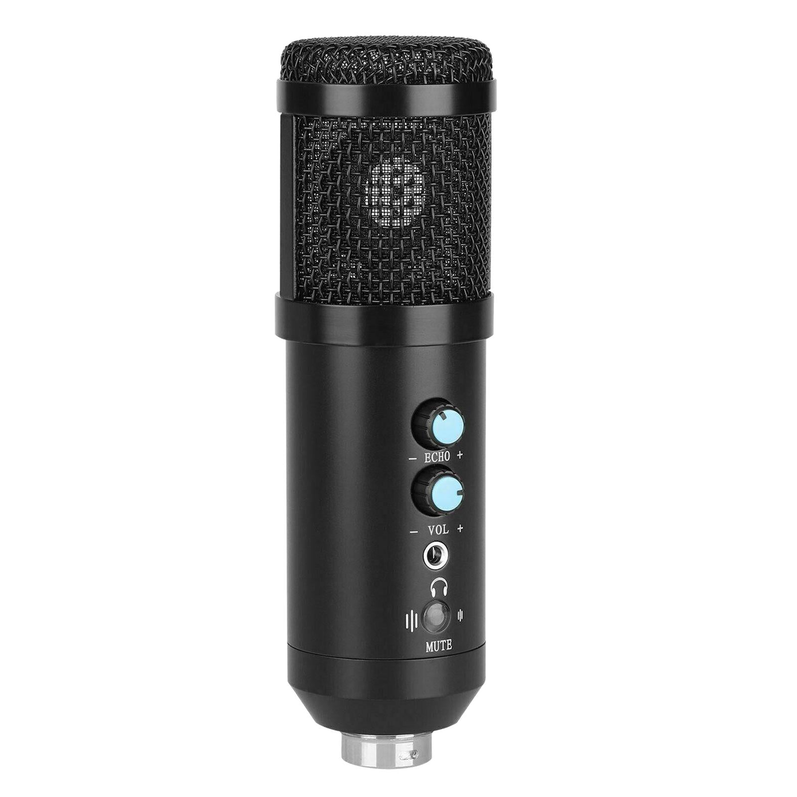 PC microphone directly connected to USB plug-and-play with tripod, great for your vocal recording, music singing, podcasting, or gaming etc.