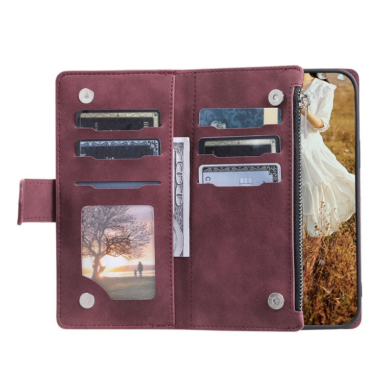 Style 005 For Google Pixel 9 / 9 Pro Wallet Case Rhombus PU Leather Zipper Phone Cover - Wine Red