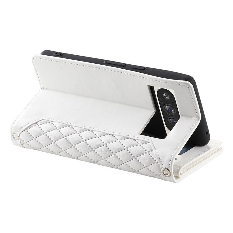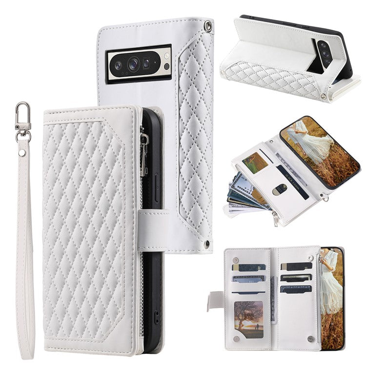 Style 005 For Google Pixel 9 Pro XL Wallet Case Rhombus PU Leather Zipper Phone Cover - White