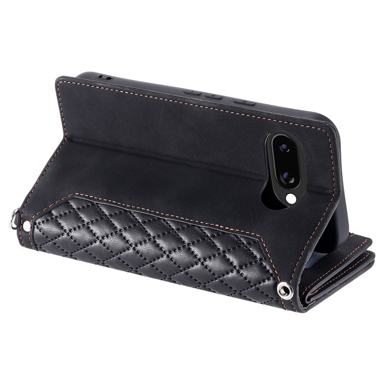 Style 005 For Google Pixel 9a Wallet Case Rhombus Stitching Line PU Leather Phone Cover - Black