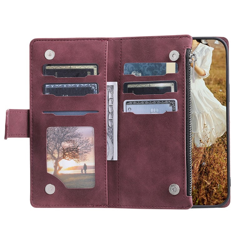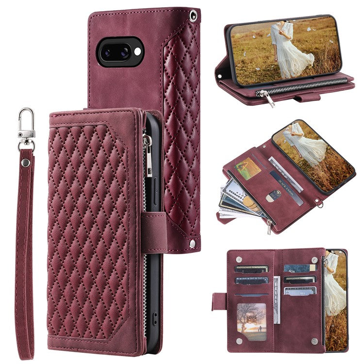 Style 005 For Google Pixel 9a Wallet Case Rhombus Stitching Line PU Leather Phone Cover - Wine Red