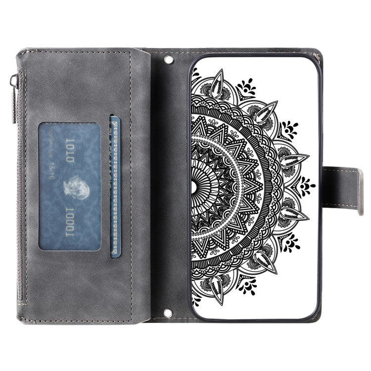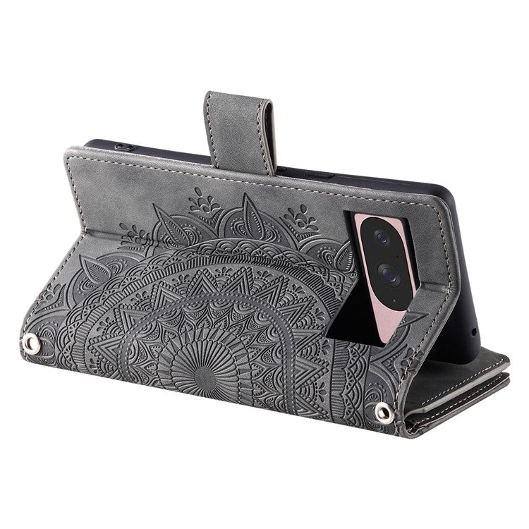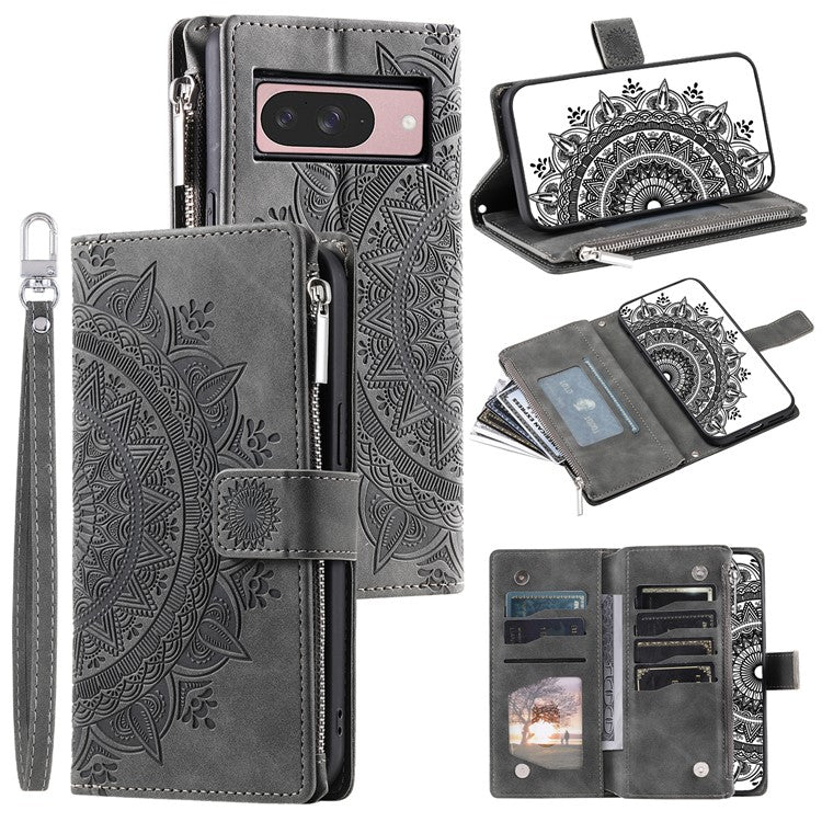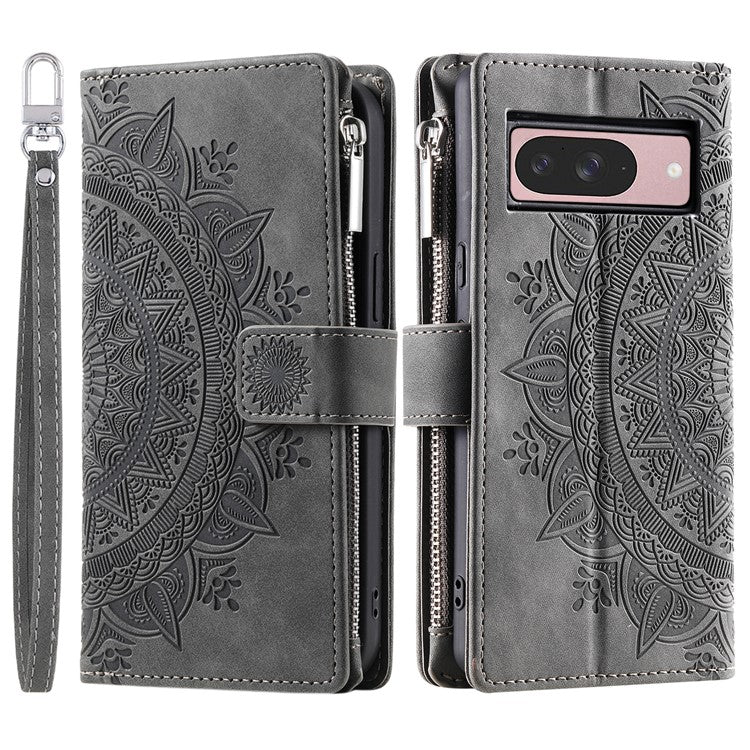 Style 006 For Google Pixel 9 / 9 Pro Wallet Case PU Leather Phone Cover Mandala Flower Pattern - Grey