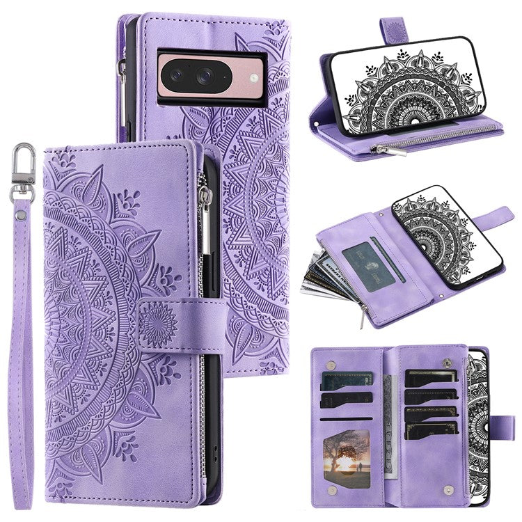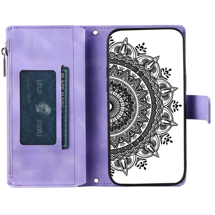 Style 006 For Google Pixel 9 / 9 Pro Wallet Case PU Leather Phone Cover Mandala Flower Pattern - Purple