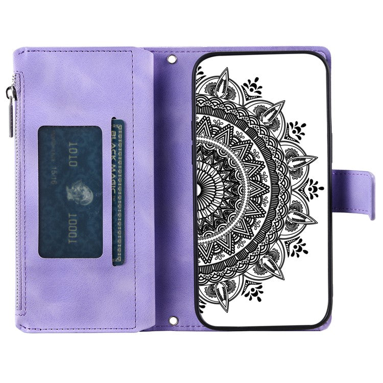 Style 006 For Google Pixel 9 Pro XL Wallet Case PU Leather Phone Cover Mandala Flower Pattern - Purple