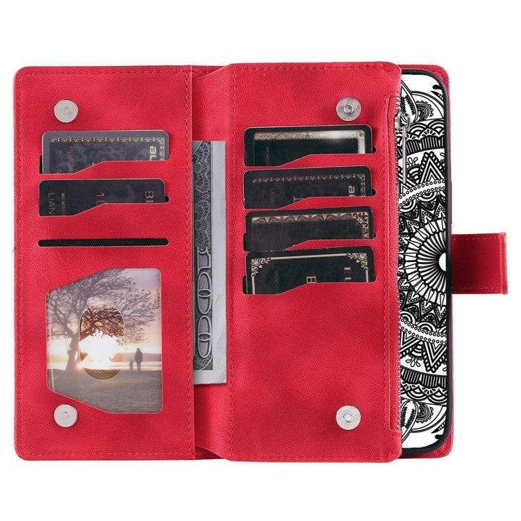 Style 006 For Google Pixel 9 Pro XL Wallet Case PU Leather Phone Cover Mandala Flower Pattern - Red