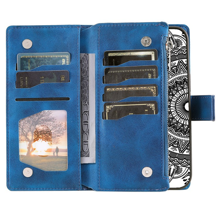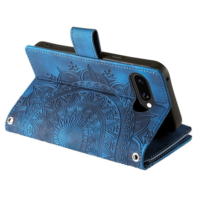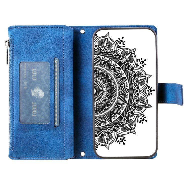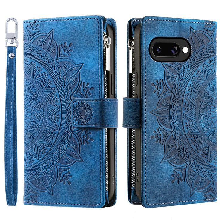 Style 006 For Google Pixel 9a Phone Case Mandala Flower Pattern PU Leather Zipper Wallet Stand Cover - Blue