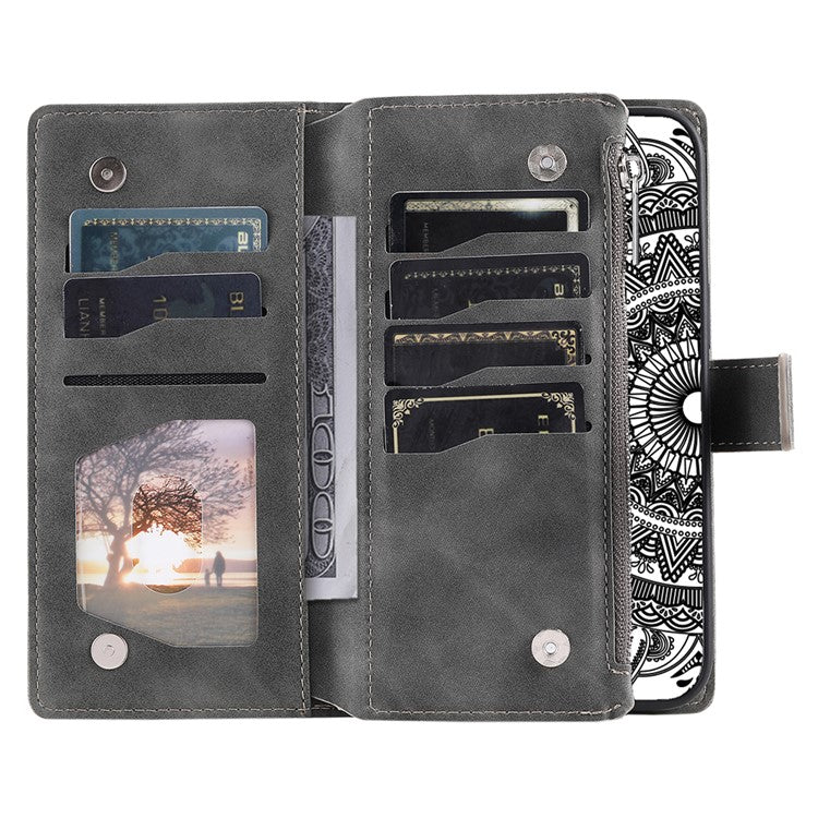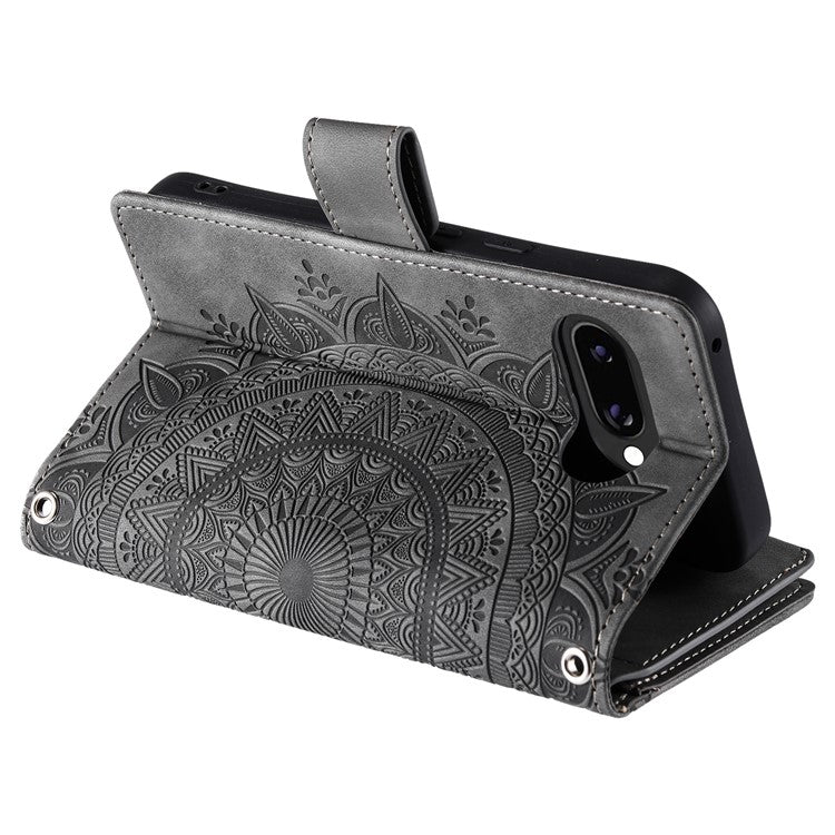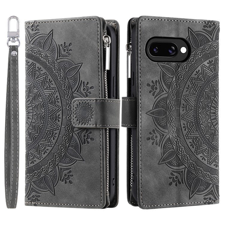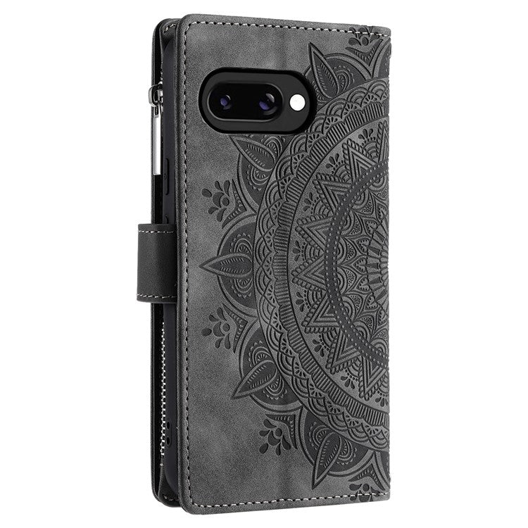 Style 006 For Google Pixel 9a Phone Case Mandala Flower Pattern PU Leather Zipper Wallet Stand Cover - Grey