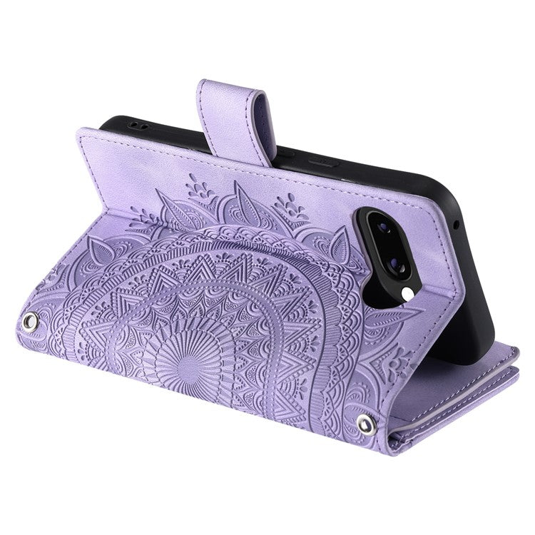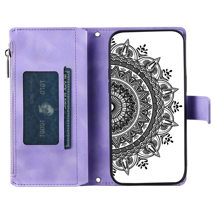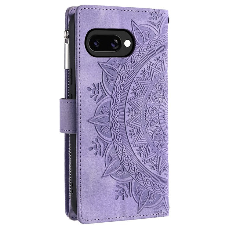 Style 006 For Google Pixel 9a Phone Case Mandala Flower Pattern PU Leather Zipper Wallet Stand Cover - Purple