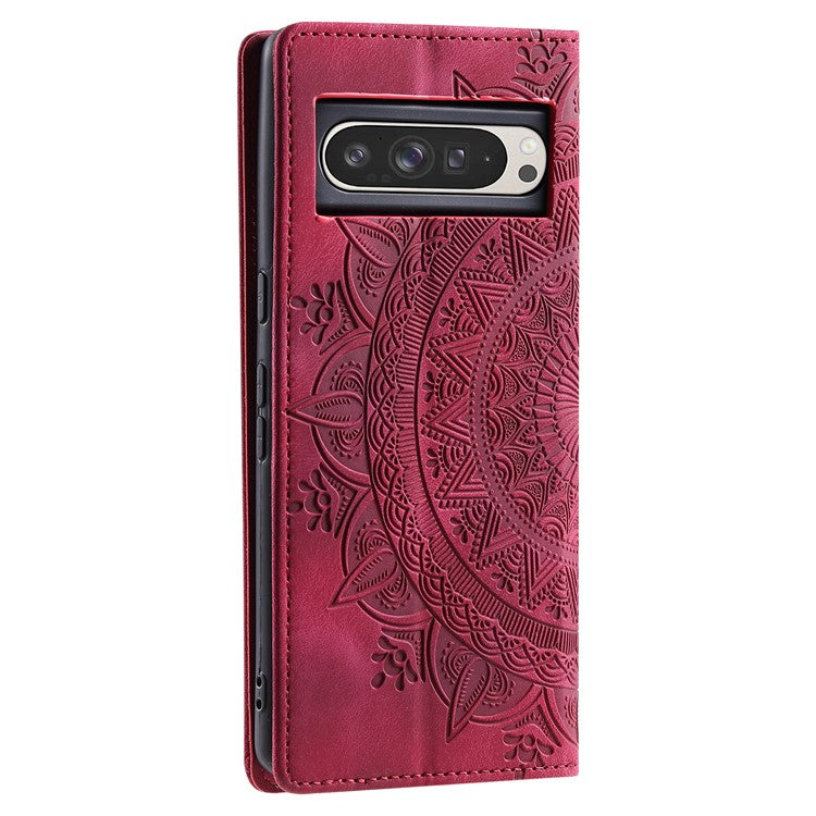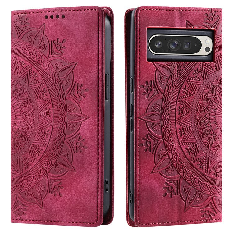 Style 010 For Google Pixel 9 Pro XL Case Mandala Pattern Magnetic Closing Leather Phone Cover - Rose