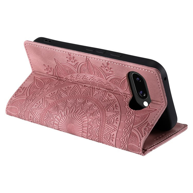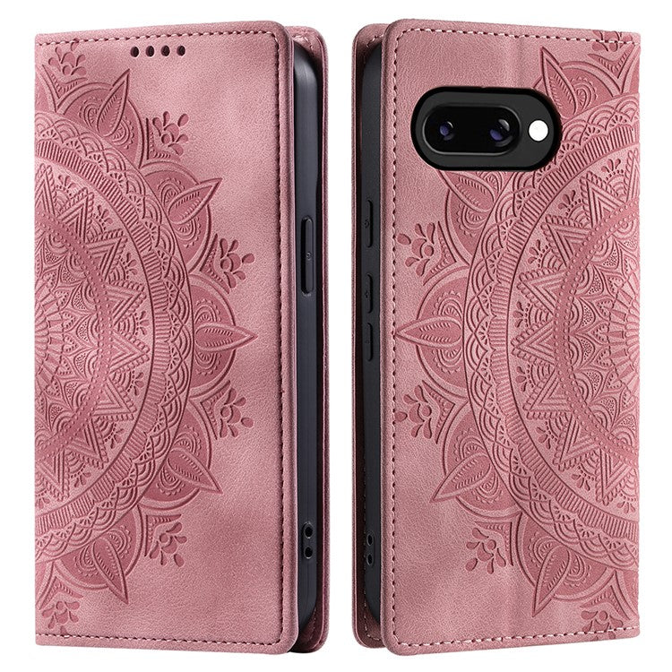 Style-010 For Google Pixel 9a Case Magnetic Closing Leather Phone Cover Pattern Imprinted - Rose Gold