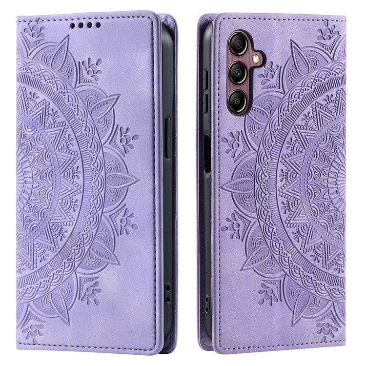 Style-010 For Samsung Galaxy M55 5G / C55 5G / F55 5G Leather Case Imprinted Magnetic Auto Closing Cell Phone Cover - Purple