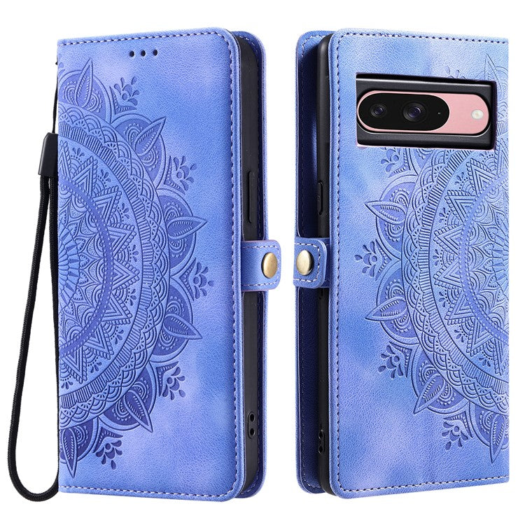 Style 016 For Google Pixel 9 Pro / Pixel 9 Case Skin Feel Totem Imprinted Wallet Leather Phone Cover - Purple