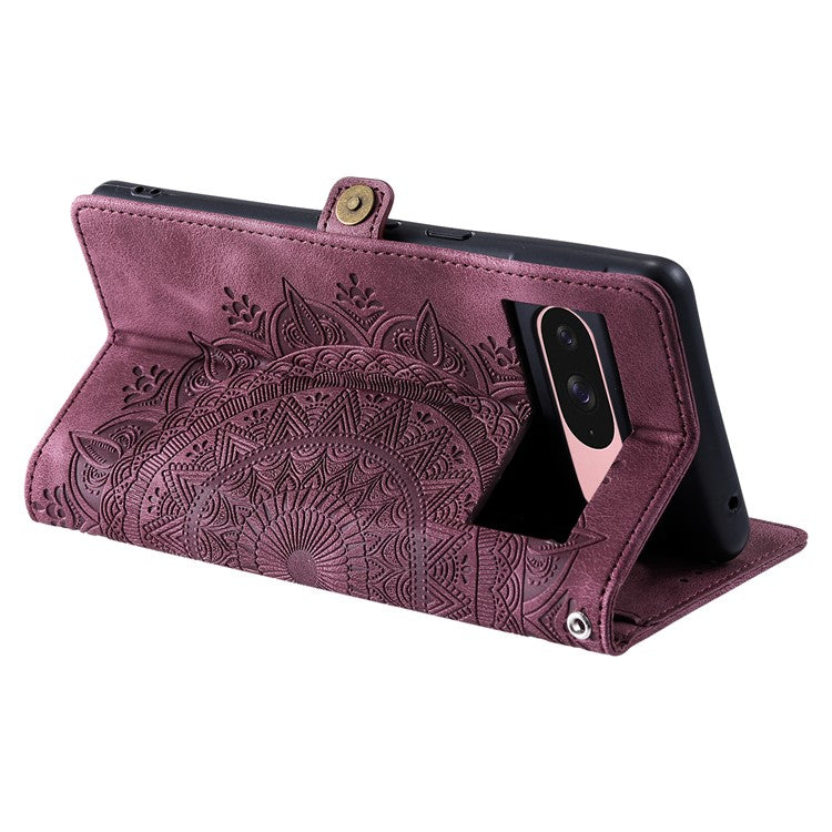 Style 016 For Google Pixel 9 Pro / Pixel 9 Case Skin Feel Totem Imprinted Wallet Leather Phone Cover - Wine Red
