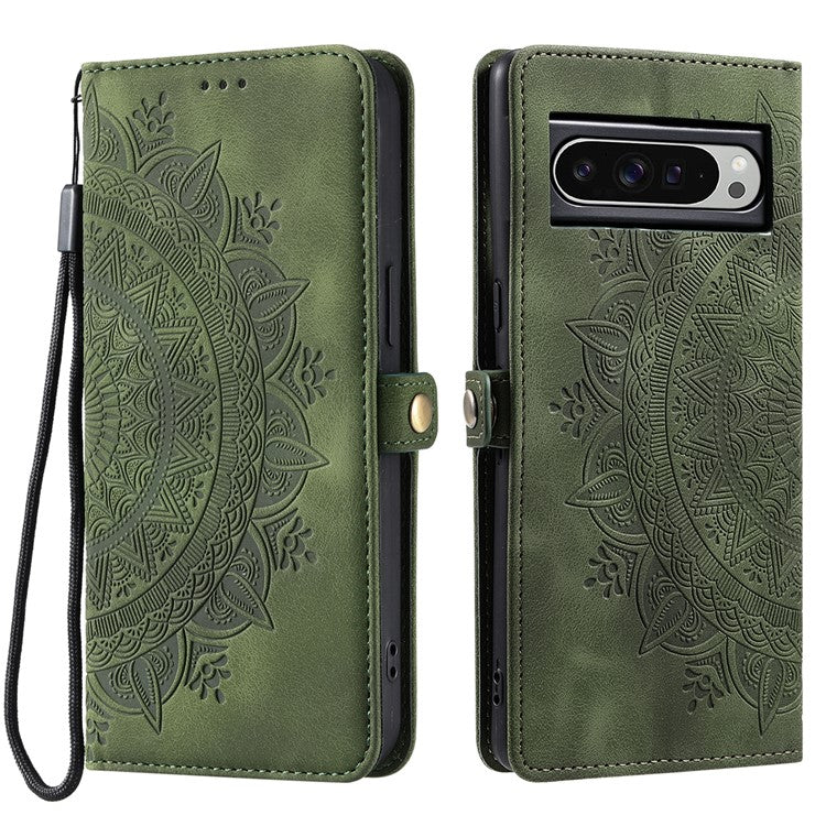 Style 016 For Google Pixel 9 Pro XL Case Skin Feel Totem Imprinted Wallet Leather Phone Cover - Blackish Green