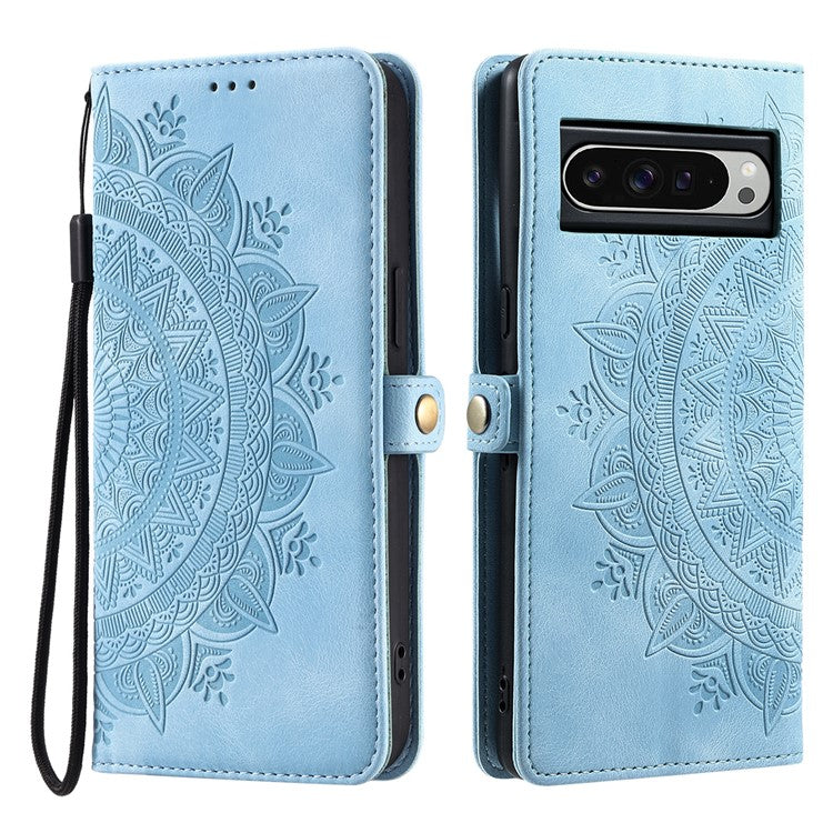 Style 016 For Google Pixel 9 Pro XL Case Skin Feel Totem Imprinted Wallet Leather Phone Cover - Lake Blue