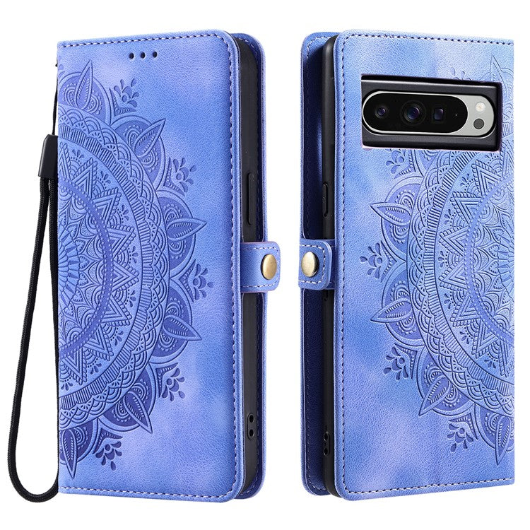 Style 016 For Google Pixel 9 Pro XL Case Skin Feel Totem Imprinted Wallet Leather Phone Cover - Purple