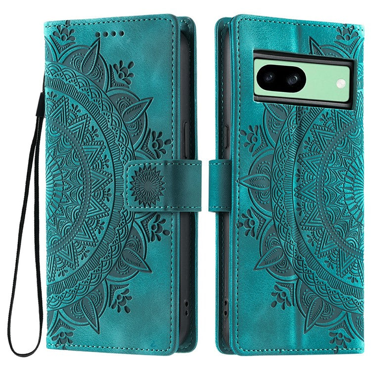 Style 018 For Google Pixel 8a Case Imprinted Totem Skin Feel Wallet Leather Phone Cover - Mint Green