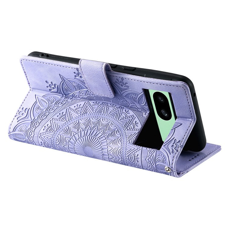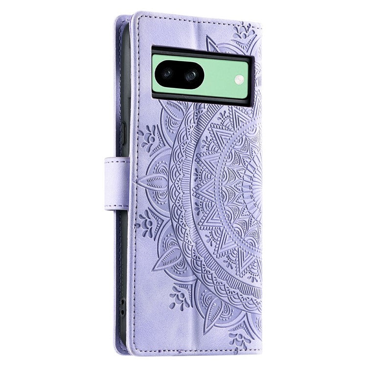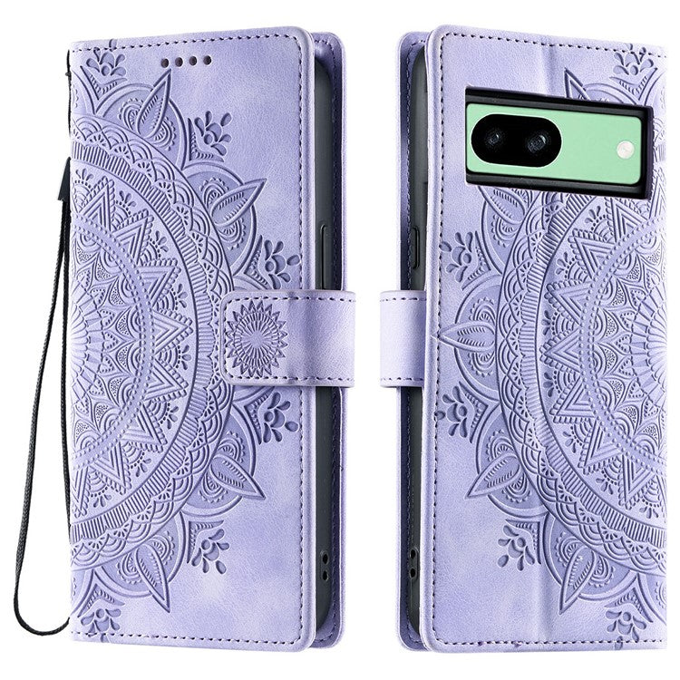 Style 018 For Google Pixel 8a Case Imprinted Totem Skin Feel Wallet Leather Phone Cover - Purple