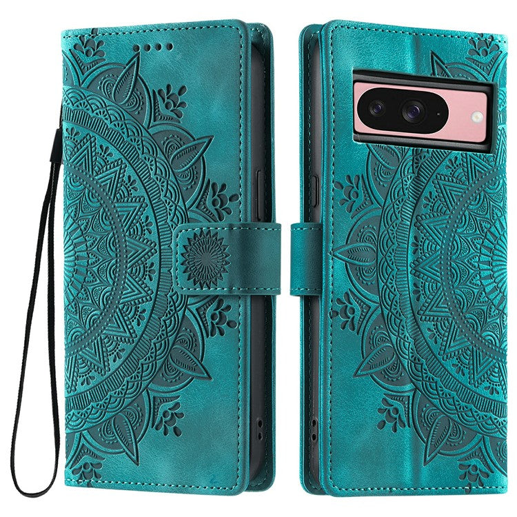 Style 018 For Google Pixel 9 Pro  /  Pixel 9 Case Imprinted Totem Skin Feel Wallet Leather Phone Cover - Mint Green