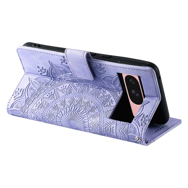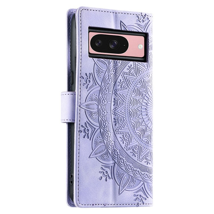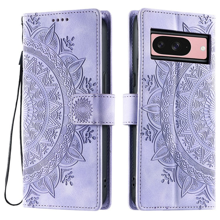 Style 018 For Google Pixel 9 Pro / Pixel 9 Case Imprinted Totem Skin Feel Wallet Leather Phone Cover - Purple