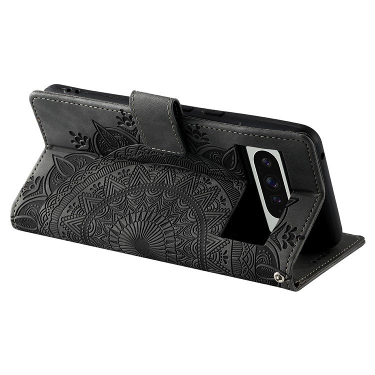 Style 018 For Google Pixel 9 Pro XL Case Imprinted Totem Skin Feel Wallet Leather Phone Cover - Grey