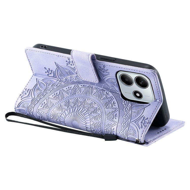 Style 018 For Xiaomi Redmi Note 14 5G Case Imprinted Totem Skin Feel Wallet Leather Phone Cover - Purple
