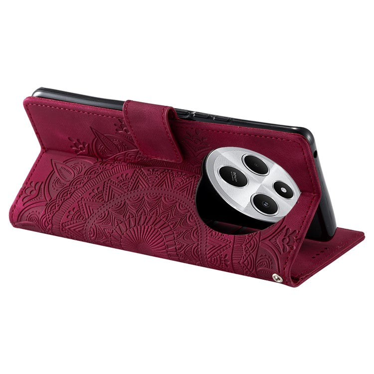 Style 018 Phone Case For Xiaomi Redmi 14C 4G / 14R 5G / Poco C75 4G Imprinted Totem Skin Feel Wallet Leather Cover - Rose