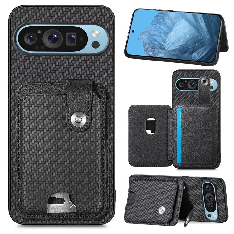 Style B C1-06 For Google Pixel 9 Case Leather+PC+TPU Kickstand Phone Cover with Card Knife - Black