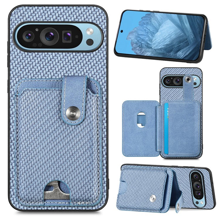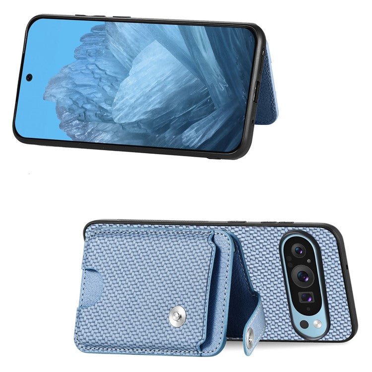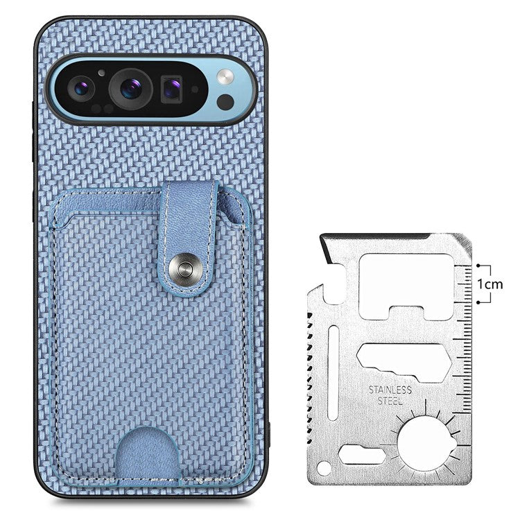 Style B C1-06 For Google Pixel 9 Case Leather+PC+TPU Kickstand Phone Cover with Card Knife - Blue