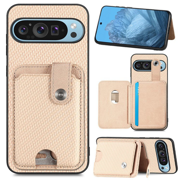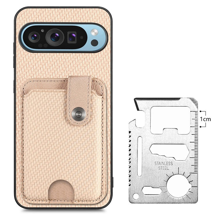 Style B C1-06 For Google Pixel 9 Case Leather+PC+TPU Kickstand Phone Cover with Card Knife - Khaki