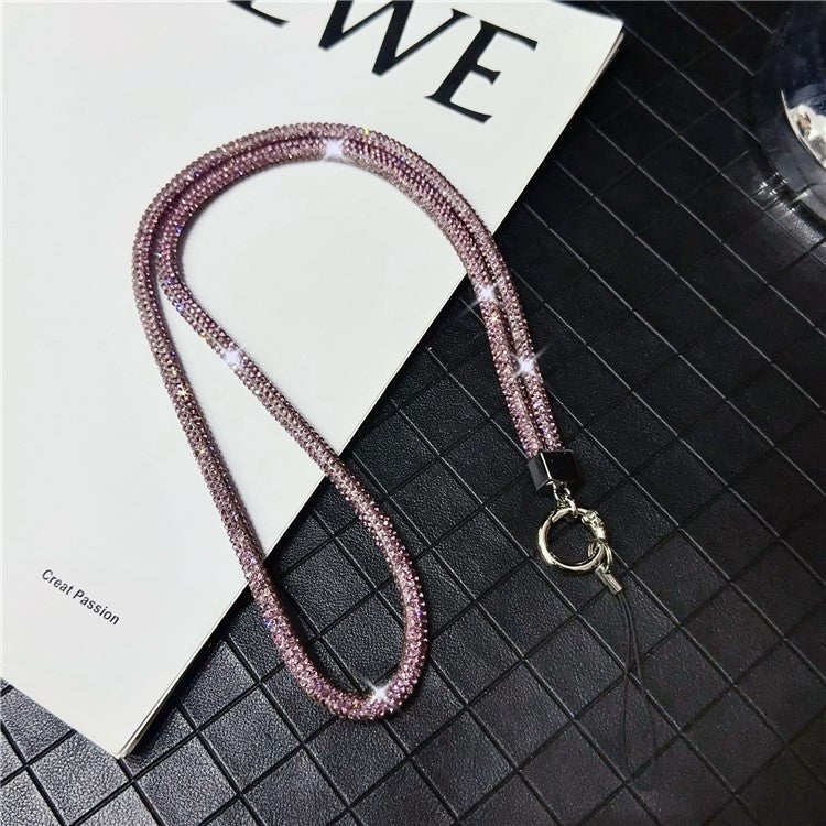 Stylish Rhinestone Phone Lanyard Cotton Rope Universal Neck Strap, Length: 80cm - Light Purple