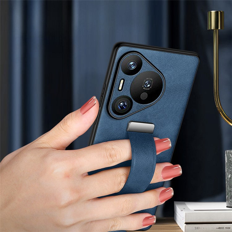SULADA Fashion Series for Huawei Pura 70 Case Kickstand Wristband Leather Coated PC+TPU Phone Cover - Blue
