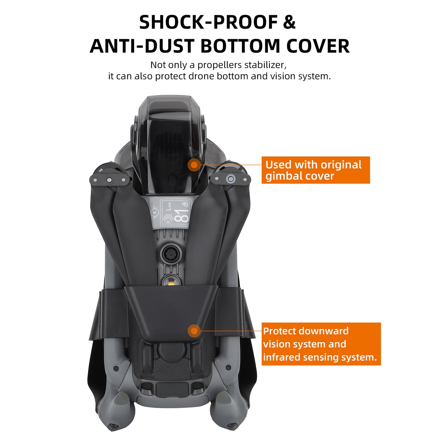 - The anti-knock and dust-proof hard bottom cover can effectively protect the drone's downward vision system and infrared sensing system