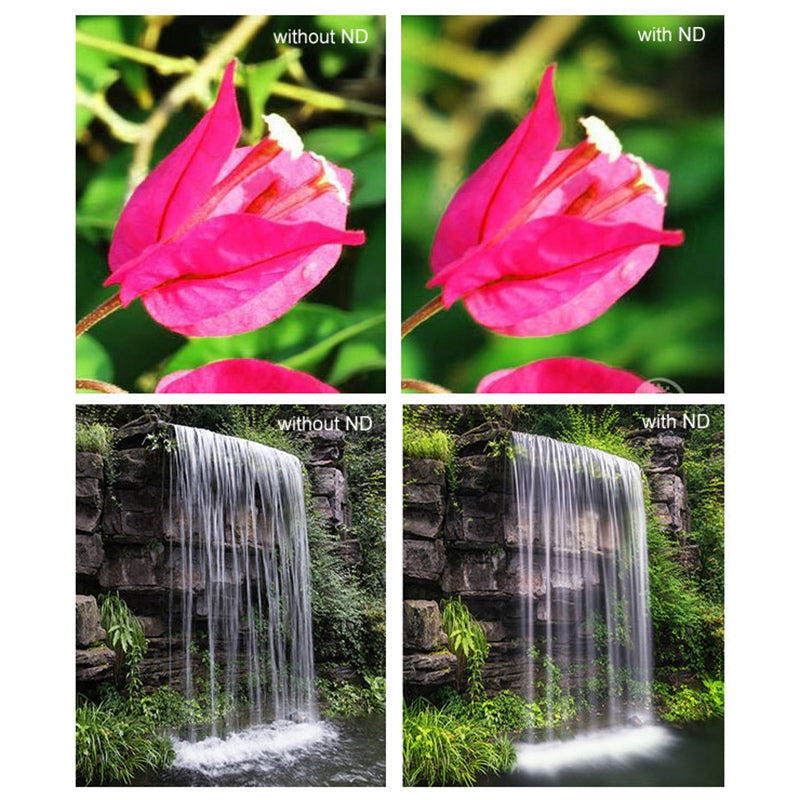 - ND filter can reduce shutter speed. Eliminates overly bright & washed-out images and captures the beauty of time and movement