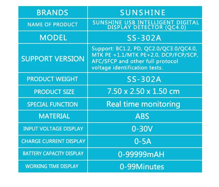 1 x SUNSHINE SS-302A USB Intelligent Digital Display Detector