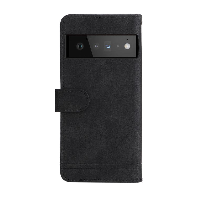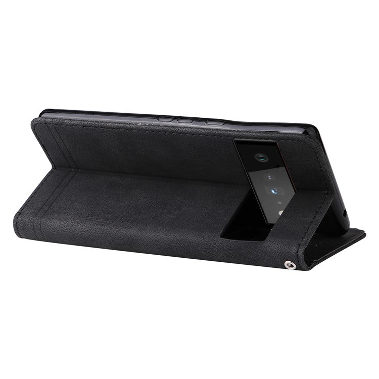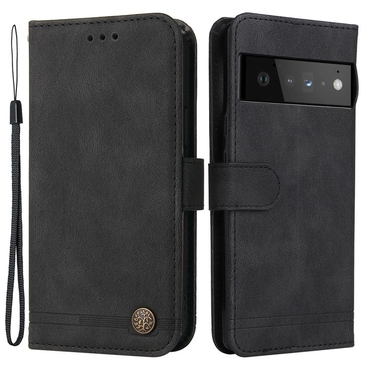 Supporting Stand Card Slots Phone Flip Case Retro Tree Pattern Metal Button Decor Wallet PU Leather+TPU Cover for Google Pixel 6 Pro - Black