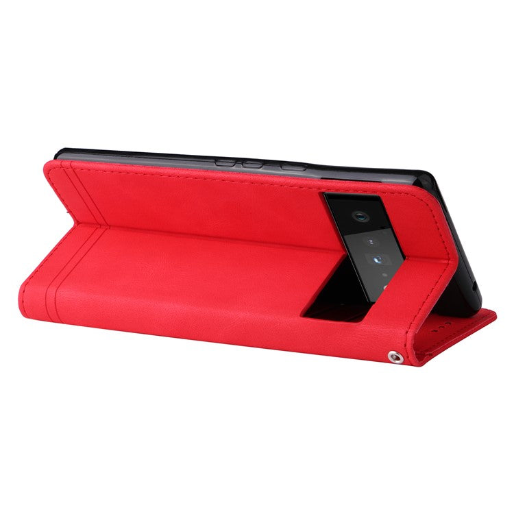 Supporting Stand Card Slots Phone Flip Case Retro Tree Pattern Metal Button Decor Wallet PU Leather+TPU Cover for Google Pixel 6 Pro - Red