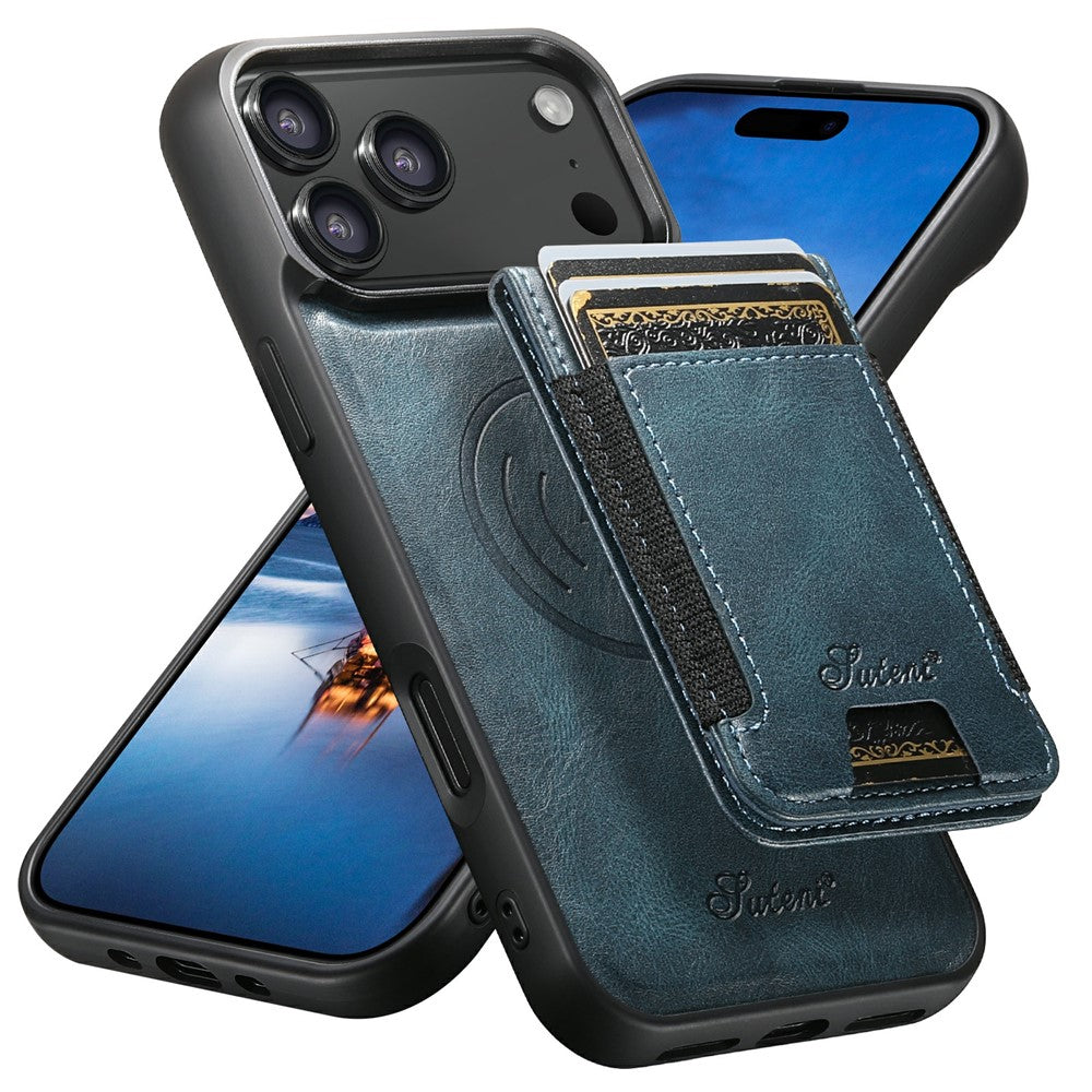 SUTENI For iPhone 17 Pro Max Case Compatible with MagSafe Card Holder Kickstand Phone Cover - Blue