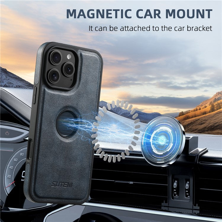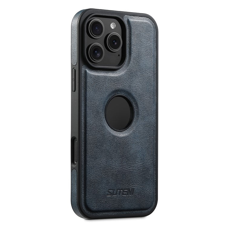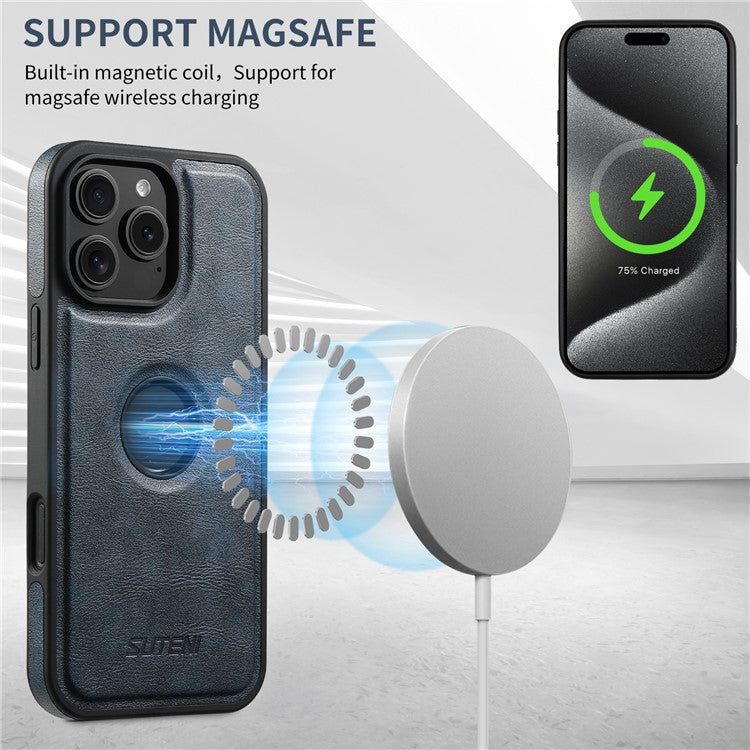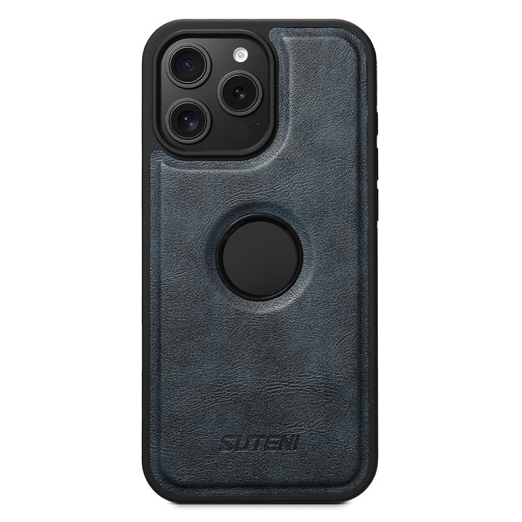 SUTENI G1 For iPhone 16 Pro Magnetic Case Waxy Texture Leather Coated TPU Phone Cover - Blue